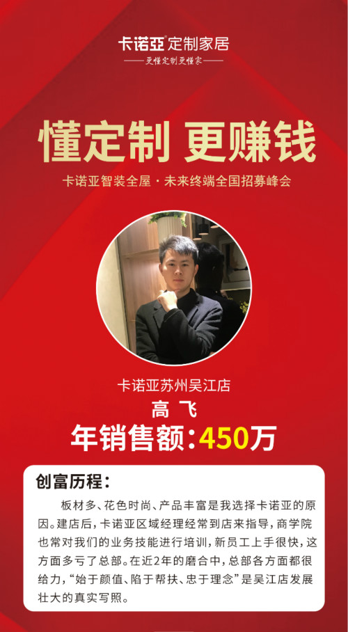 想要加盟全屋定制品牌賺錢,以上三點是非常關(guān)鍵的因素,希望大家能對此有所了解。加盟全屋定制選擇卡諾亞定制家居,作為中國至早的定制家居品牌,準(zhǔn)上市公司,行業(yè)生產(chǎn)規(guī)模前五,產(chǎn)品涵蓋5大基材、6大空間、7大風(fēng)格及20個系列,有足夠的運營經(jīng)驗和資本,有系統(tǒng)的管理模式和營銷體系,能夠給予專賣店專業(yè)的市場指導(dǎo)和營銷建議,讓終端經(jīng)銷商更具戰(zhàn)斗力,盈利有保障。