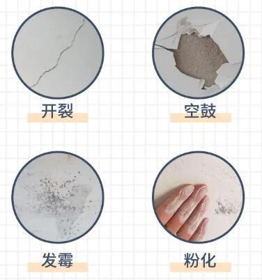 老房墻面即使看起來沒什么問題,也要驗(yàn)明是否有開裂、空鼓、發(fā)霉、粉化等問題,如有,則必須全部鏟除,重新批灰、刷墻。